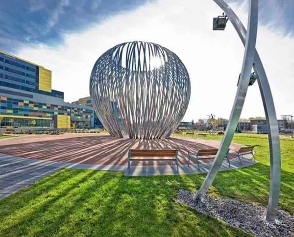 外形像“雕塑的懷抱”,它歡迎病人、參觀者、員工和行人通過(guò)三道“門”進(jìn)入這件藝術(shù)品內(nèi),提供了一種個(gè)性化體驗(yàn)。