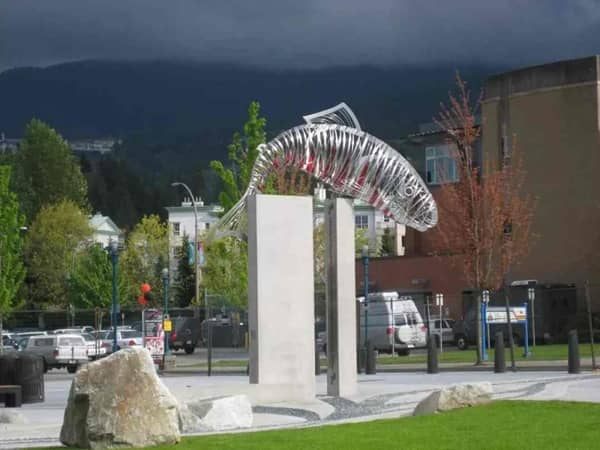 鮭魚或“紅色魚”(象名Kwikwetlem的意思)的象征意義激發(fā)了廣場(chǎng)上的細(xì)節(jié)和公共藝術(shù)。