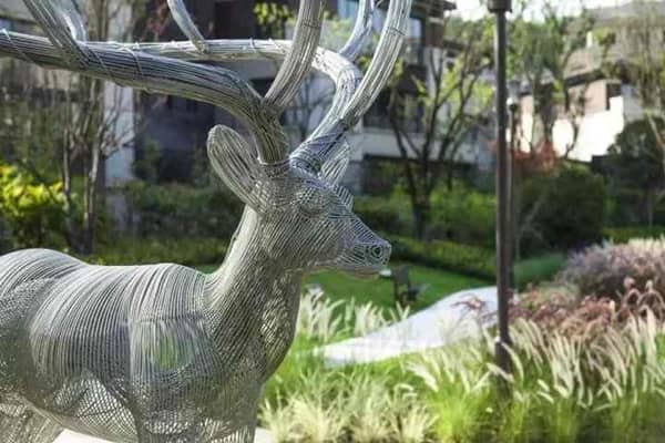采用手工編織手法雕塑,游走在虛與實(shí)之間,相印景觀綠化的共融若影若現(xiàn)從而成為點(diǎn)睛細(xì)節(jié)。手工編織、焊接,拼接工藝,每個(gè)焊接點(diǎn)和角度都做到極致。